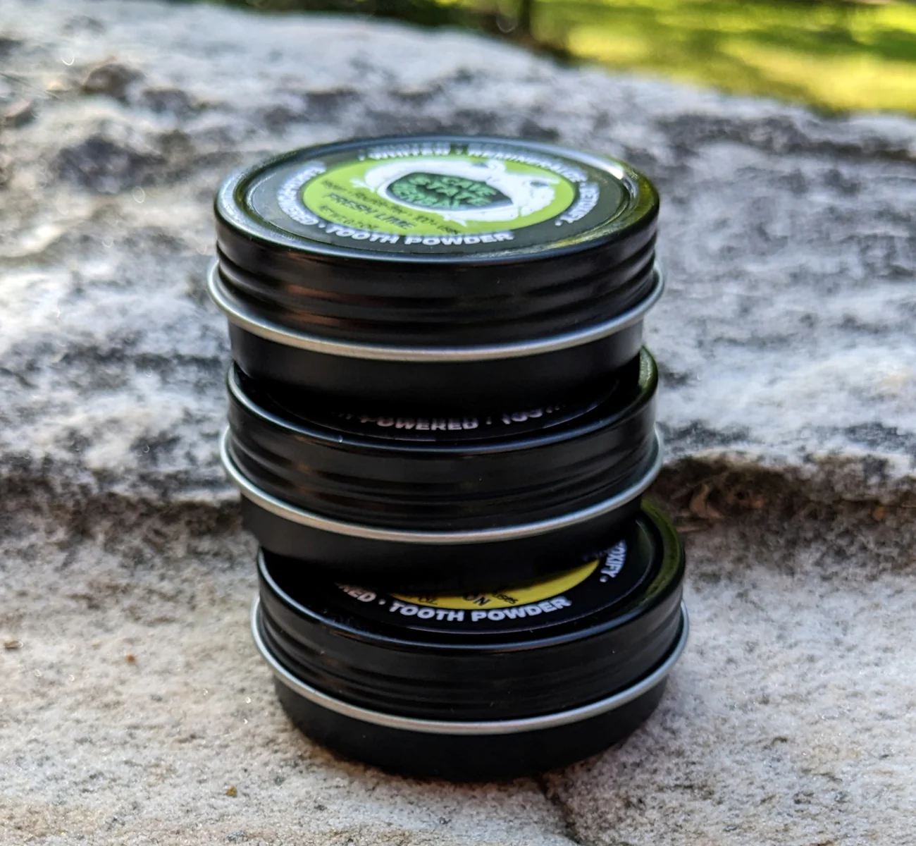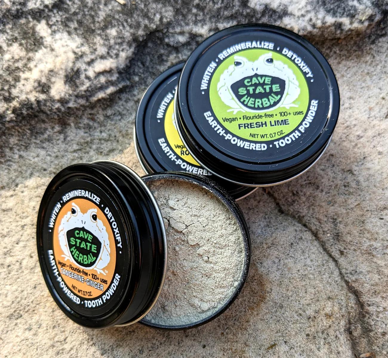 Would you like to try our natural tooth powder, but you can't decide on a flavor? Now you don't have to! This pack of three 0.7 oz sample-size tins comes packed with one each of our popular refreshing citrus flavors: Tangerine Ginger, Rosemary Lemon, and Fresh Lime. Makes a thoughtful gift, great travel set, or for anyone who likes to try new flavors! This tooth powder is hand-crafted for anyone looking for a natural alternative to conventional toothpastes. It is made of our seven-part synergistic blend of working natural ingredients for a safe, delicious, no-nonsense clean. It is vegan and paleo-friendly, and comes in a reusable steel tin with twist-off cap. The 0.7 oz size should last upwards of 100 brushings for each tin, or about a month each, for one person brushing 2x daily.